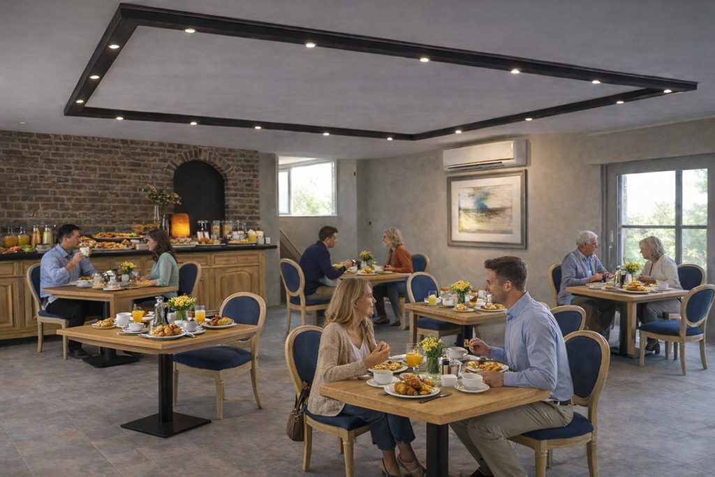 - Polyvalente ruimte — ruim genoeg voor een gezellig ontbijt, een workshop of een creatieve sessie